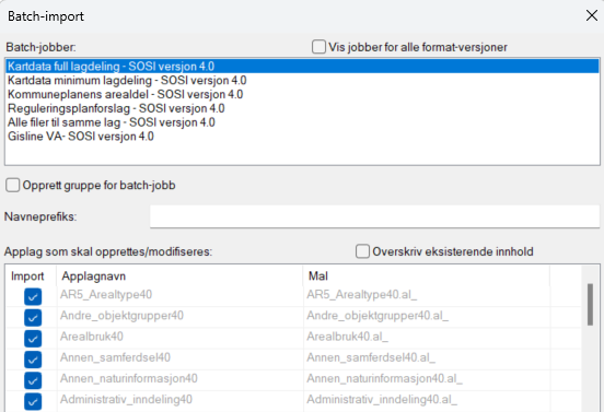 För standard GMI-import och GMI-import för lantmätning är det inte möjligt att importera utan att skriva över befintligt innehåll i filen. Fältet är därför grått och kan inte ändras.