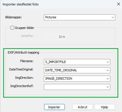 Attributet för ImgDirection kommer nu att behålla det ursprungliga värdet. I EXIF ges denna av ImgDirectionRef som är antingen magnetisk nord eller geografisk nord (sann nord). Skillnaden (missvisningen) mellan dessa varierar beroende på var du är i Norge, från ca. noll graders missvisning på Västkusten till ca. 15 graders östlig missvisning i Öst-Finnmark.