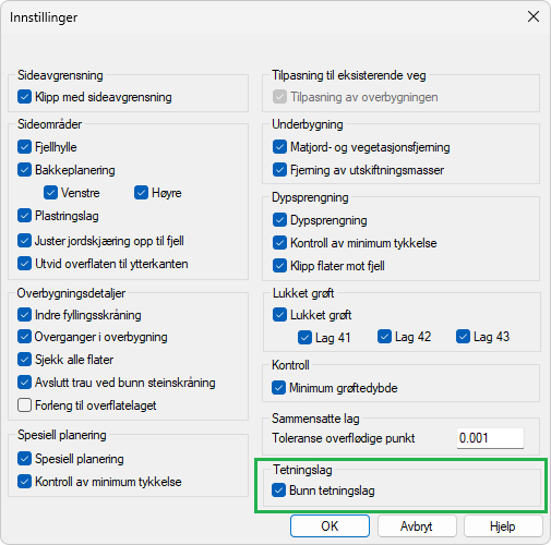 Ny kryssruta i bygginställningar för att slå av/på byggande av tätningslager.