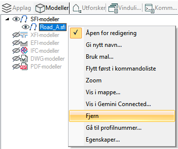 Disse modellene og filene slettes i Gemini Connected Web siden Gemini Terrain ikke har innebygget funksjonalitet for å slette disse.