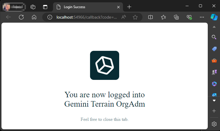 Du kan nå lukke nettsiden og starte Gemini Terrain. Dersom nettleseren dukker opp igjen (Gemini Terrain sjekker om du er innlogget), kan du lukke den og fortsette i Gemini Terrain.