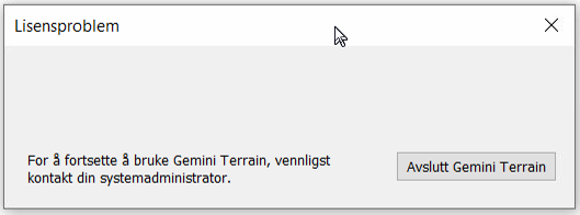 Fra versjon 20 av Gemini Terrain er lisenssystemet 10Duke tatt i bruk. Dette gir bedriften full oversikt over faktisk bruk og behov, og lar dere administrere tilganger for sluttbrukere.