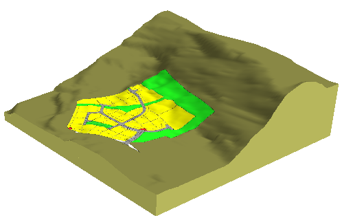 Eksempel på reguleringsplan drapert på terrengoverflate