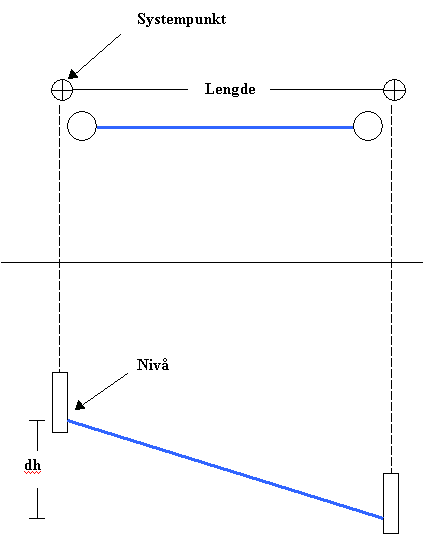- Lengde: rett avstand fra senter kum til senter kum