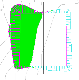 Ofte er det ønskelig å dokumentere massene også i tverrprofiler. Det er laget en spesialfunksjon for dette som forutsetter at du har definert en linjedefinisjon (SFI) som krysser gropen.